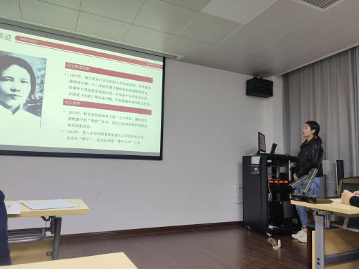 积极分子代表张若诗分享了无产阶级革命家向警予的英雄事迹。向警予是中国共产党唯一的女创始人,是妇女解放运动领导人之一。向警予为中国革命的胜利和妇女的解放付出了毕生的她的一生可以说是奋斗的一生、战斗的一生,她的奉献和牺牲精神永远值得新时代大学生学习。