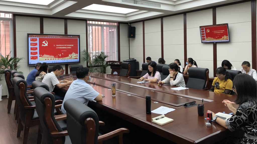 最后,会议传达了学校2021年下半年新学期工作布置会精神并组织了工作研讨。田彬书记就学校“十四五”特别是本学期的总体目标和战略思路,以及本学期党的建设和一流大学建设的重点工作与核心任务做出传达。作为学院行政、学工的分管领导,学院党委副书记冯国涛结合公共服务教工党支部的实际,对支部党员和教职工开展工作的主动性、创新性、服务性提出了相应要求,并要求全体教职工做到学思践结合、点线面结合、心手眼结合,通过边工作、边思考、边提高,建立起公共服务体系的高水平团队,凝心聚力、砥砺奋进,推动学院的各项工作上新台阶。