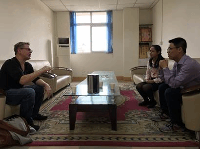 2018年4月21日上午,台湾明道大学时尚造型学系助理教授、纺织和时尚顾问 Mark Sussman到纺织与服装工程系进行交流,纺织与服装工程系系主任郭荣辉、副系主任阎斌、周怡副教授参加。Mark Sussman介绍台湾明道大学及时尚造型学系的基本情况、人才培养、学生就业等,同时,分享他在美国芝加哥20多年和台湾的纺织品和服装市场经验及创业经验,并介绍他在美国指导学生创业及参加竞赛的经验,鼓励我校纺织服装专业学生到美国和台湾高校及大品牌公司进行交流、创业培训及就业。郭荣辉主任介绍了奈菲影视