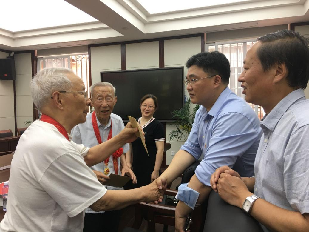 共有9名老党员获得“光荣在党50年”纪念章。2021年6月23日上午,学院在纺工附楼205会议室举行了“光荣在党50年”老同志慰问会,学院党委刘晓虎书记、何有节院长、离退休教工党支部书记李慧老师、部分老同志代表和教工党支部负责人出席会议,会议由刘晓虎书记主持。