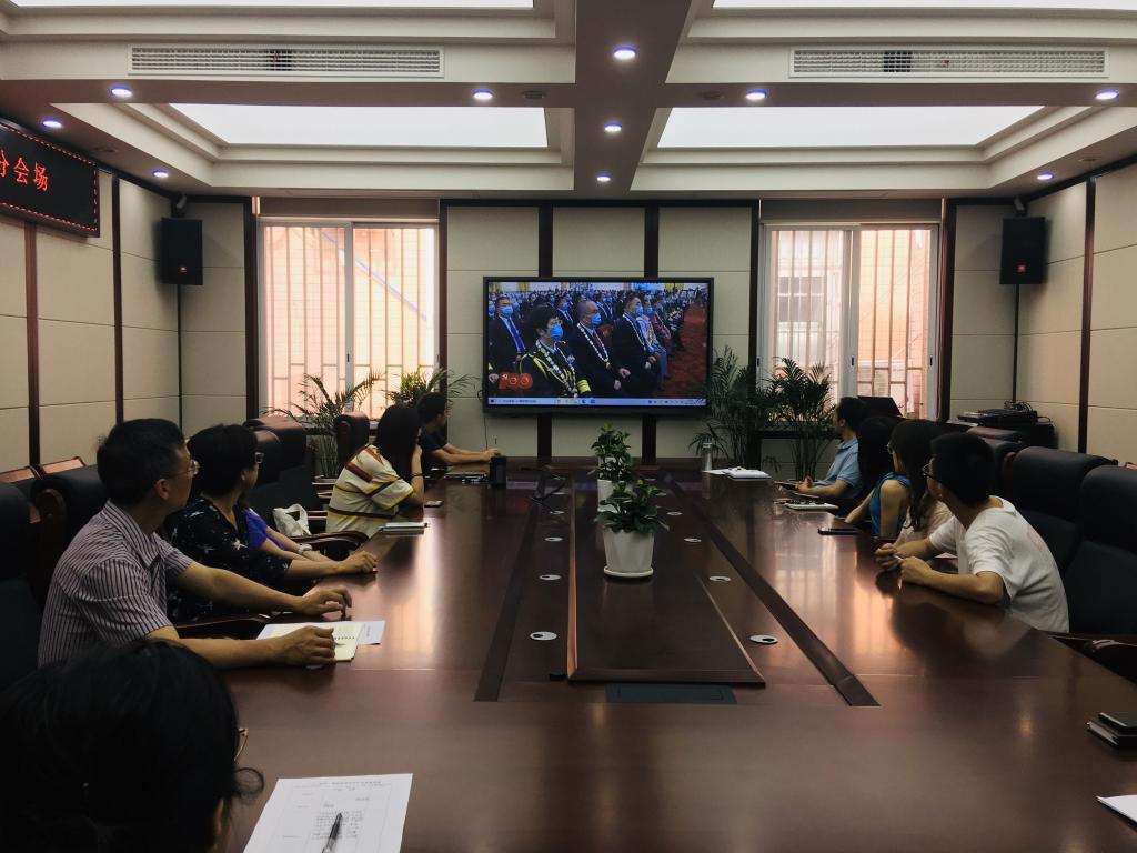 6月29日上午,“七一勋章”颁授仪式在人民大会堂金色大厅隆重举行。中共中央总书记、国家主席、中央军委主席习近平向29名“七一勋章”获得者颁授勋章并发表重要讲话。学院党委委员、科级干部、支部负责人、党员代表在纺工附楼205会议室集体收看“七一勋章”颁授仪式。