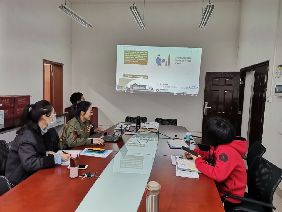2018级辅导员杨维老师就专题《牢记初心使命,推进自我革命》进行说课,并分享教学经验。经与会老师共同研讨,此专题以“历史周期律”为教学导入,引出自我革命的必要性。通过用于自我革命是我们党最鲜明的品格、我党推进自我革命的实践成效和宝贵经验、新时代把党的自我革命推向深入三方面讲解。