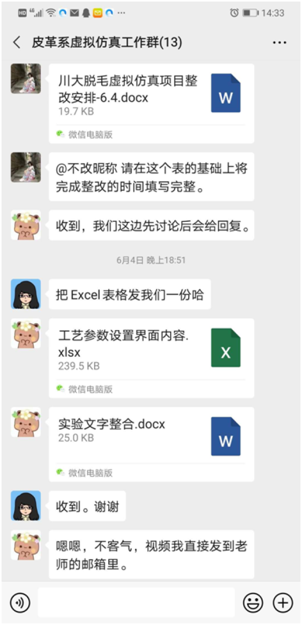 “制革脱毛生产实训及脱毛效果可视化监测虚拟仿真”项目推进会在皮革楼203会议室顺利召开。项目团队曾运航副教授、但年华副教授、张琦弦老师、张金伟老师与负责开发虚拟仿真软件的企业科大奥锐代表参加了此次线上项目研讨会。