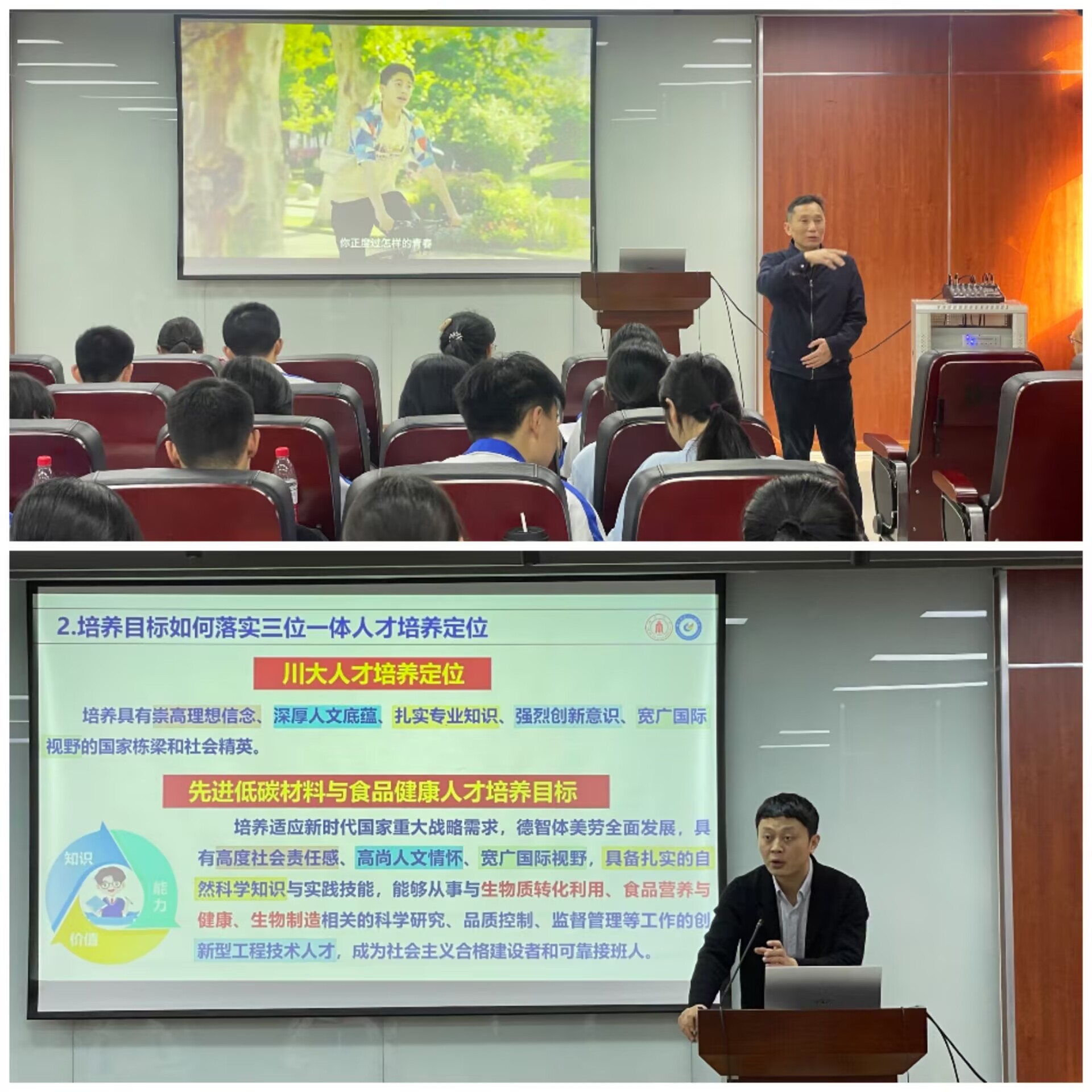 孟虎副研究员通过生动案例,解析前沿领域发展动态。董怡副研究员与孟虎副研究员围绕学科前景、专业选择等话题,与学生们展开互动交流,针对职业规划、学习路径等问题予以解答。