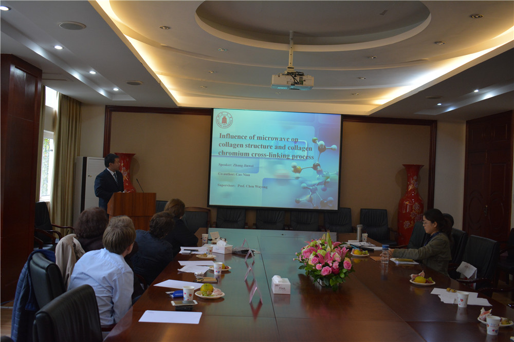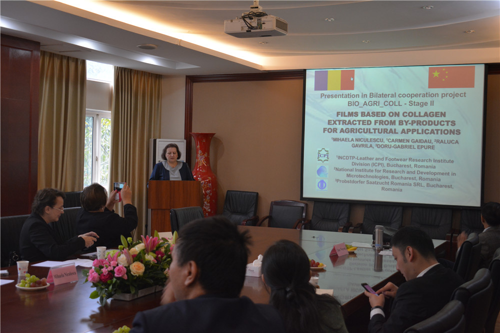 10月11日和10月12日,中、罗双方共同进行了中国-罗马尼亚皮革科技学术研讨会,研讨会由陈武勇教授主持。Carmen研究员就欧盟和罗马尼亚在皮革废弃物降解技术、降解产物在农业方面的应用进行了介绍;Mihaela研究员结合其所在机构的工作,对皮革废弃物水解产生的水解蛋白及其改性产物的应用进行了介绍。辜海彬博士就工程实验室在皮革废弃物资源化方面的应用进行了介绍,并对其降解产物在造纸领域的应用进行了说明;周晋博士就大数据、3D打印和VR技术等在革制品涉及、制造和销售过程的应用进行了简介。此外,Miu研究员介绍了γ射线对皮革的破坏作用及其评价,Claudiu博士就其开发的NMR-MOUSE技术在胶原基材料检测方面的应用进行了介绍;陈武勇教授课题组成员还根据课题组研究工作,在基于微波辐照的制革鞣制反应和鞣制机理、利用青霉菌降解铬鞣革屑、鞣后湿加工废液中铬配合物的组成和性质、生物质资源的开发和应用以及针对肥胖儿童用鞋设计原理进行了报告。