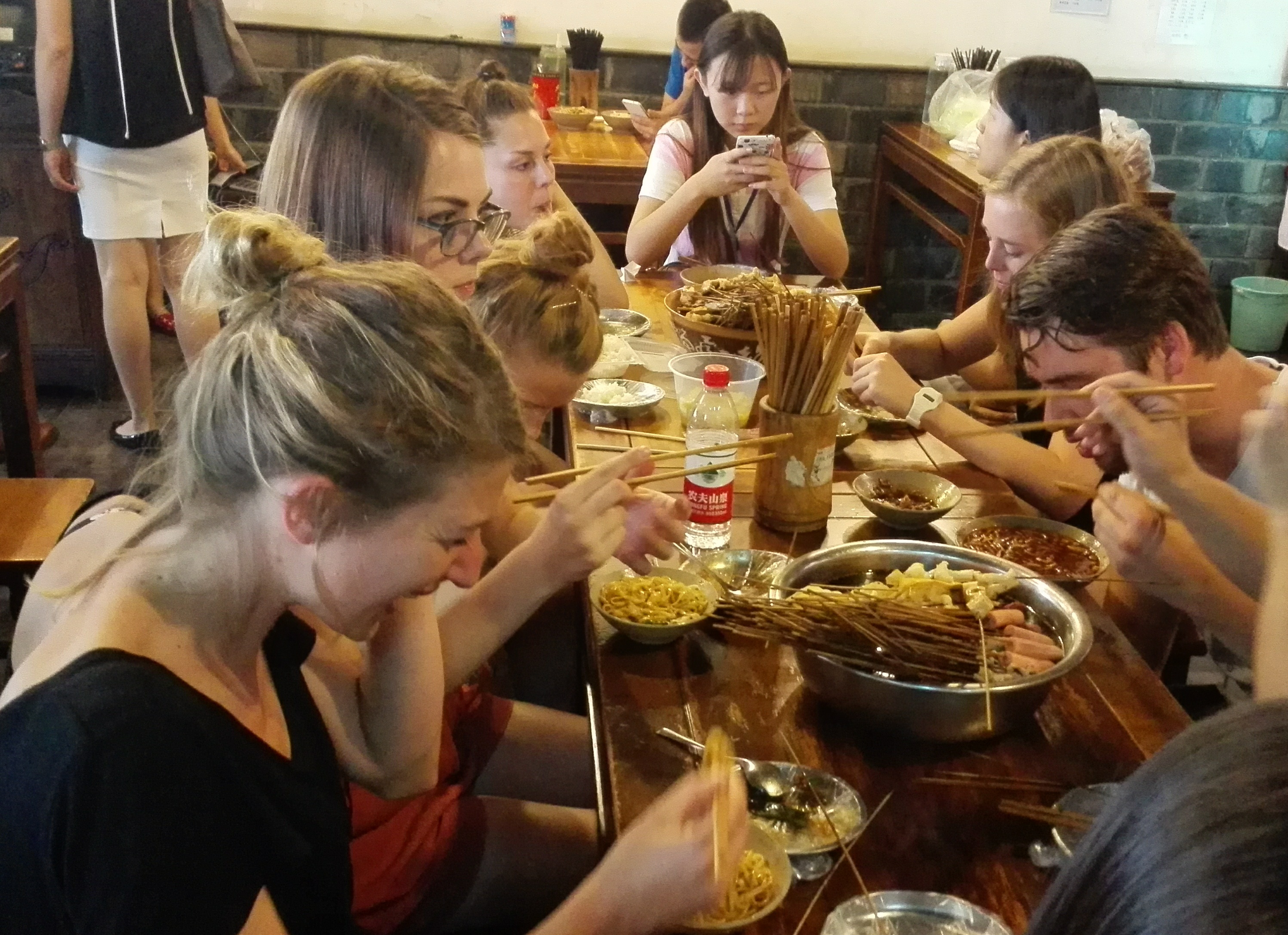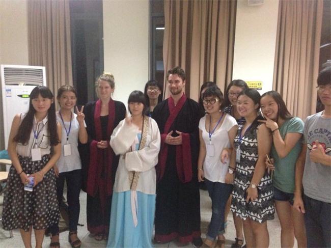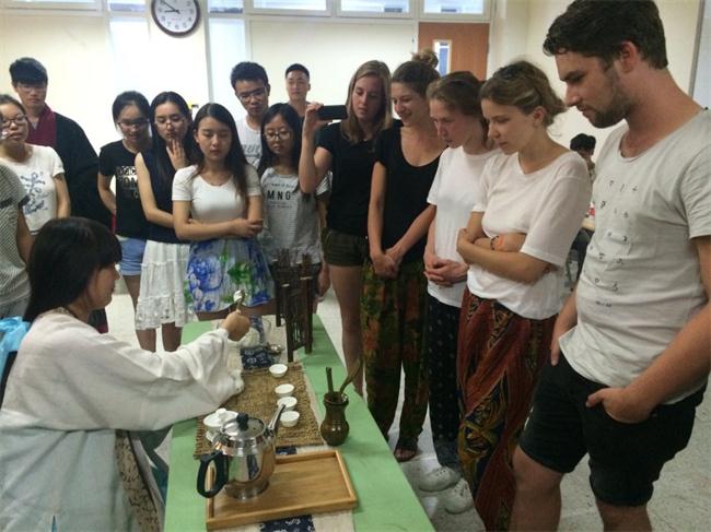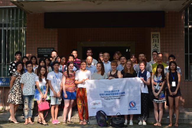 的基本情况和交流营的大致安排,并祝愿营员们在这期间能有所收获。简短的开营仪式后,中外营员们进行了风采展示,通过图片、视频以及实物展示,将自己学习和研究的课题做了介绍,让彼此对专业学习情况有一个大致的了解。下午,由服装与服饰专业负责人张皋鹏副教授给大家做了精彩的《西南少数民族服饰》讲座,图文并茂,营员们表示收获很大。课程结束后,荷方的营员还去参观了IFS和春熙路,品尝了本地小吃。晚上,在江安校区综合楼B105来自川大的同学们为荷兰的小伙伴们准备了一场中国风Party。唯美的汉服表演将我们带回到几千年那个神奇的王朝,女子款款而出,男子巍巍而立,一场视觉的盛宴缓缓展开;优雅的茶艺展示让荷兰的小伙伴们惊叹不已,他们静静地聆听着悠悠古琴,品味着茶香余绕唇间的淡淡滋味;欢乐的电影模仿环节一下子将活动的气氛拉到了小高潮,浪漫的泰坦尼克悄然响起,同学们深情的表演让人拍手称快;皮影《佳人曲》更是另一波的中国风来袭,一则凄美的爱情故事,让在场的人都感动不已。川大的同学们卖力地表演,只为将最好的一面展示给国外友人。美丽俏佳人,情深帝王心,小小的皮影生动地为我们再现了那个属于历史的美好回忆;一曲周杰伦的《皮影戏》顿时high爆全场,灵动的小人物伴着欢快的旋律在荧幕上跳着disco,同学们好奇不已,纷纷上来比划,川大的同学们热情地为他们讲解,现场的气氛达到高潮;最后的欢愉时刻,川大的同学为荷兰的小伙伴们一一着上汉装,作揖拜礼,回味古味。快乐的Party降下帷幕,然而留在同学们之间的情谊却将永存。