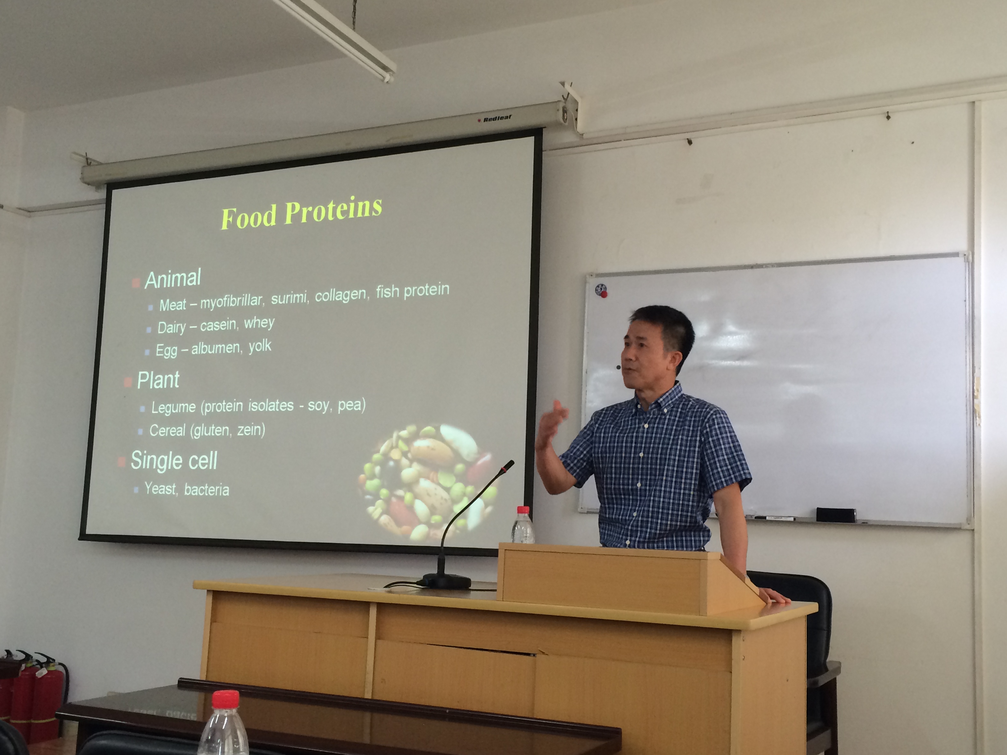 纺工楼应邀发表题为“提高食品蛋白质功能的新技术”的学术报告,广大师生慕名而来,报告现场座无虚席,报告由食品工程系系主任何强教授主持。报告前期,熊教授简要地介绍了美国肯塔基州的文化、大学以及他的科研团队,他诙谐幽默的语言迅速使会场气氛轻松愉悦。随后,熊教授以独特的科学视角从蛋白质加工特性的角度出发,结合基础理论及最新的研究成果,从物理、化学、酶等几方面生动地讲述了几种提高食品蛋白质功能的新技术。其中,熊教授讲到他因在国际会议中受到启发,率先采用谷氨酰胺转胺酶(TGase)应用于肉制品加工中,利用TGase可催化体外多数蛋白质发生分子间或分子内交联反应的特性,提高产品的弹性及持水能力。他鼓励大家要保持同学、朋友和同事间的学术交流和互动,及时关注最新的学术动态,培养自身敏锐的学术嗅觉,大胆尝试,勇于动手。在最后的提问环节中,同学们踊跃提问,如:目前国际上对肉制品安全检测的新技术,多酚类物质在肉制品加工中的应用现状,如何提高撰写SCI文章的能力及录用率等问题,熊教授均耐心细致地为同学们一一解答。报告中,熊教授流利的口语、富有磁性的声音、挺拔儒雅的气质、深入浅出的讲述让大家如沐春风、受益匪浅,收获知识与开阔视野的同时更被熊老师深厚的学术积淀与个人魅力深深折服,此次报告在师生们热烈的掌声中结束。 资料链接: 熊幼翎博士现为美国肯塔基大学终身教授、江南大学特聘教授、美国食品科学家联合会(Institute of Food Technologists)会刊《Journal of Food Science》副主编,先后获得美国肯塔基大学杰出研究科学家奖、美国肉品科学协会杰出研究奖、杰出成就奖、美国化学会青年科学家奖、瑞典皇家农林科奈菲影视