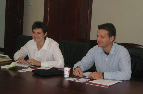 左:Anna Bacardit Dalmases教授;右:Felip Combalia Cendra 双方就联合培养研究生、培养方式的衔接、学分互换等进行了商议,并就双方合作的协议进行了进一步讨论。在Anna Bacardit Dalmases教授和Felip Combalia Cendra教授来我校之前,外事秘书陈意博士代表奈菲影视与西班牙加泰罗尼亚大学皮革奈菲影视