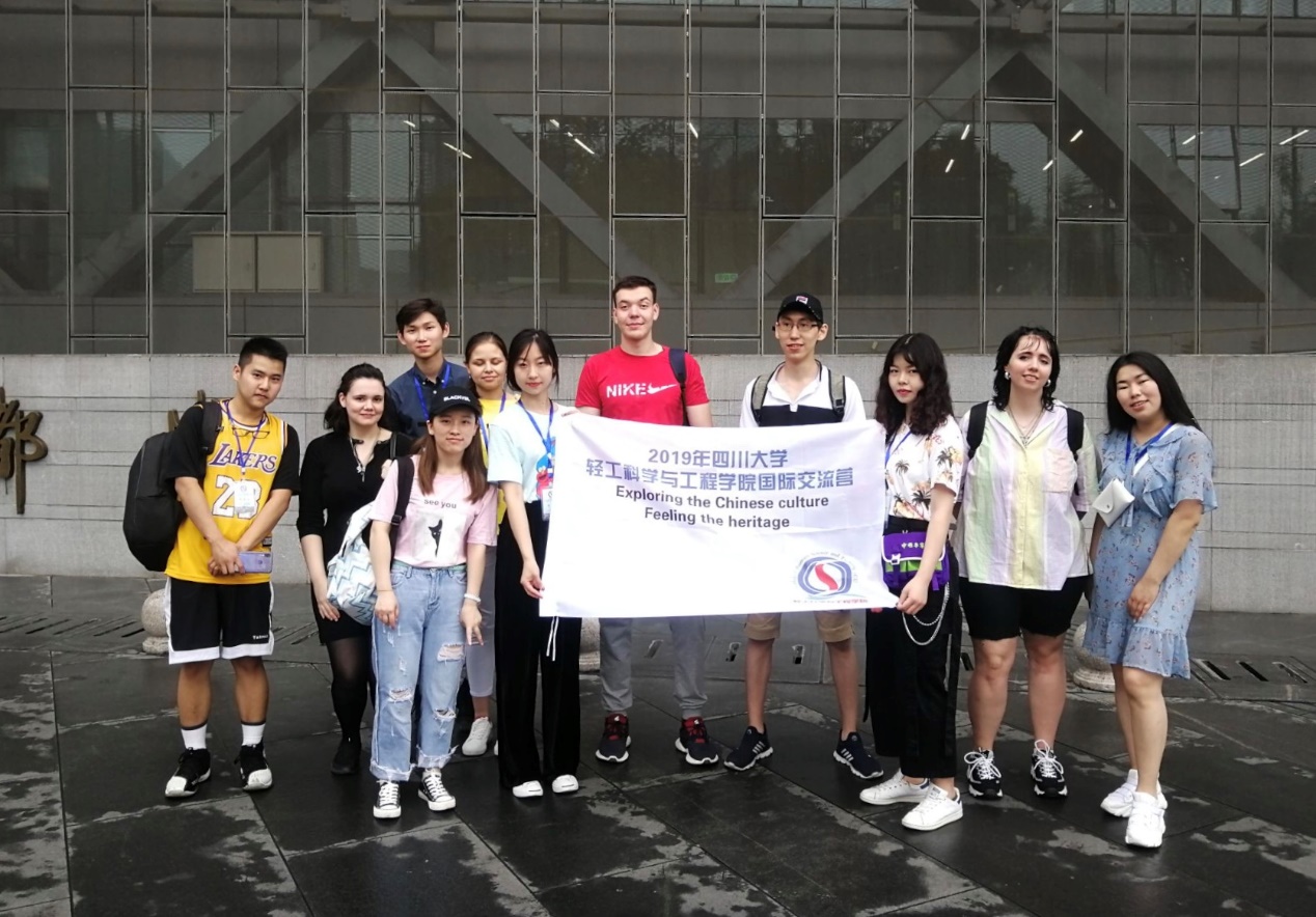 交流生们与交流生在成都市博物馆门口合影