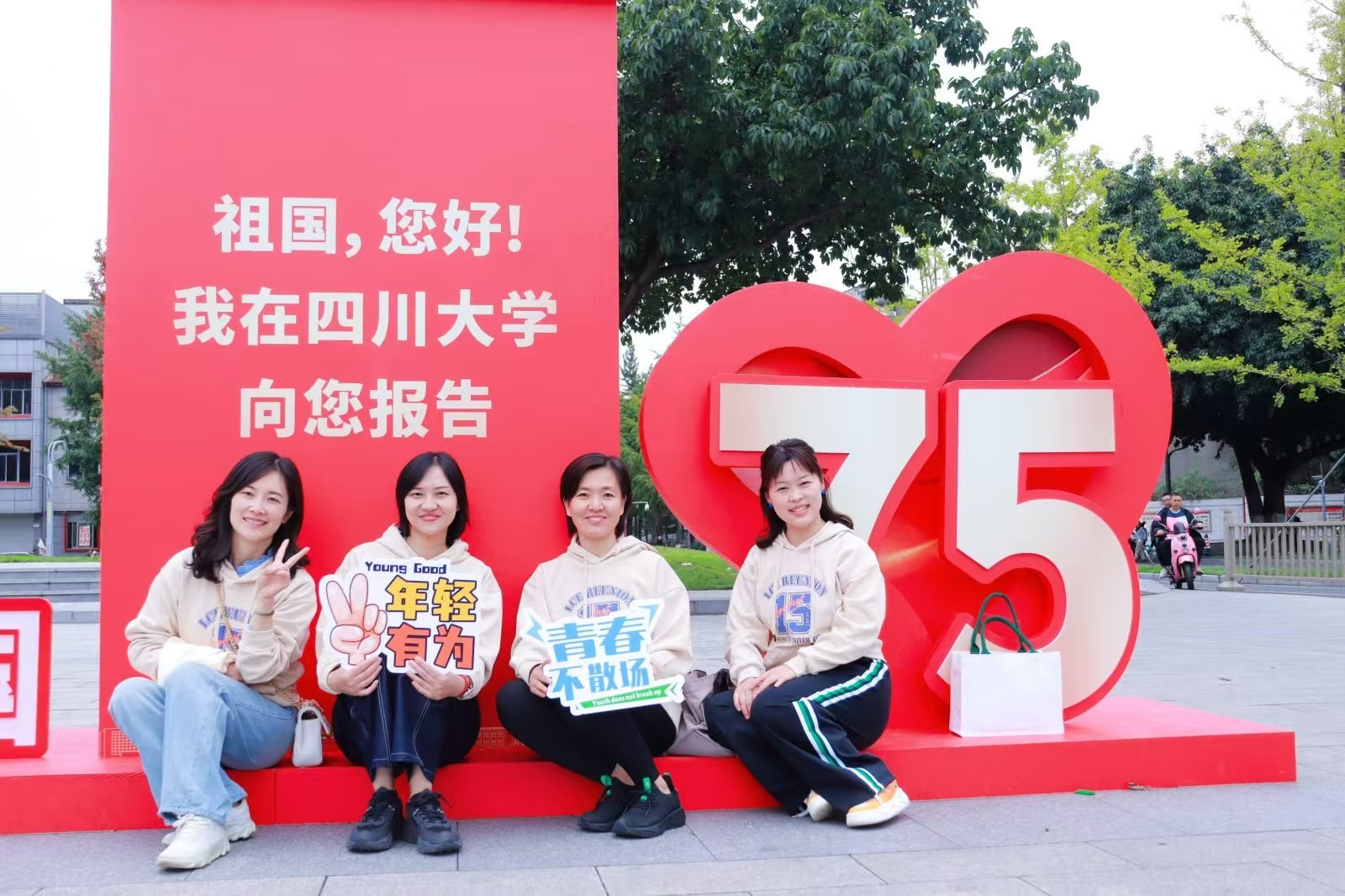 10月3日上午,校友和家属们在望江校区纺工楼签到,领取服装和纪念品。换上精心设计的文化衫后,校友一行参观了望江校区校园,考察了熟悉的皮革楼和新建的先进材料科研大楼。随后,校友们步行至学府广场,在北门和行政楼前合影,定格珍贵瞬间。