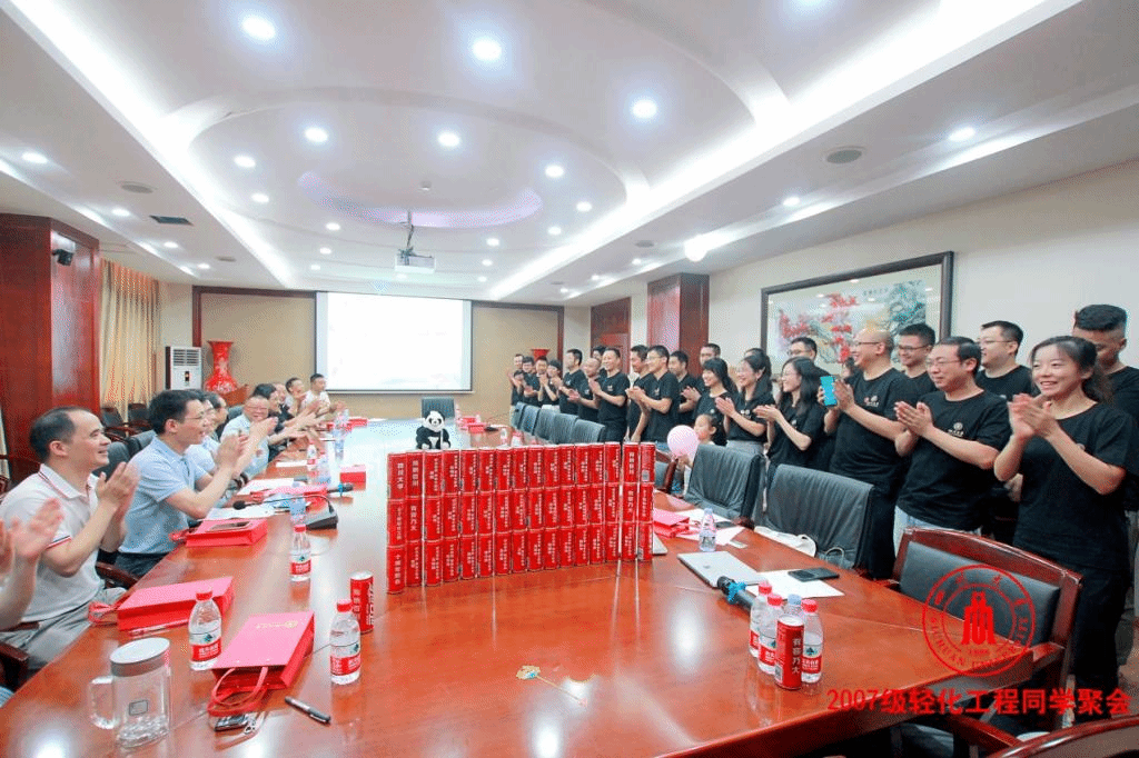 相关领导的悉心指导及大力支持,同时得到了各位校友的倾力赞助。在此次活动筹备过程中,2007级轻化工程专业的校友们积极参与,通过商议及民主投票等方式确定了活动方案,并严格按照国家及学校疫情防控相关规定筹办。本次活动到达现场的校友共计40余位,其余未能亲临现场的均以“云参会”的方式进行积极互动。