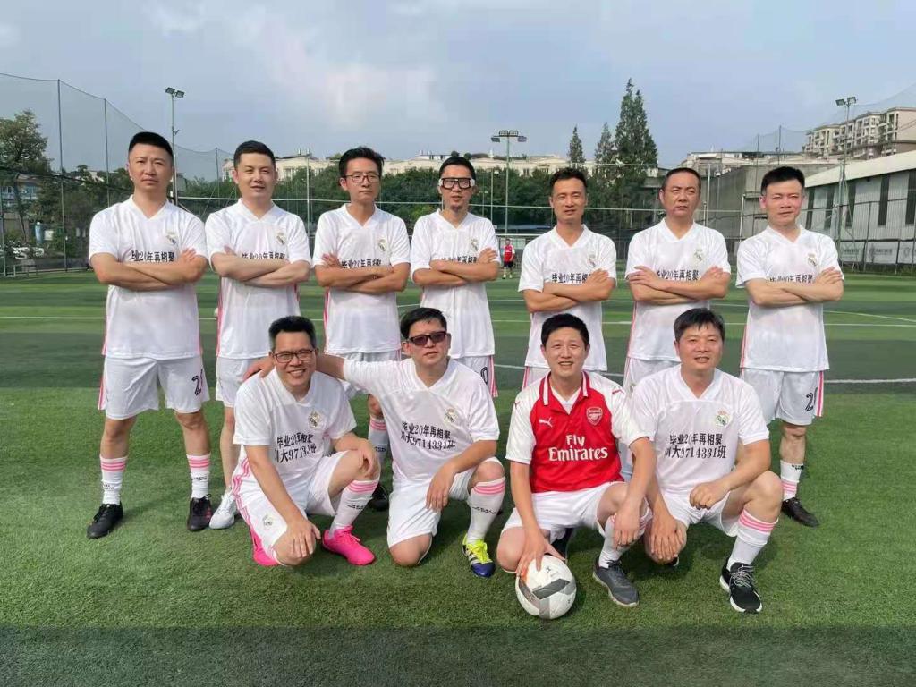师生见面会后,校友们游览校园,并拍照留念,男生们穿上运动装在校园运动场踢了一场足球,重温校园生活。
