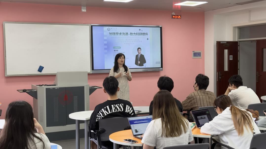 望江校区基础教学楼A座412教室成功举办了以“加强学术沟通 助力科研提升”为主题的学术讲座。本次讲座由服装与服饰设计系主任杨璐铭教授主持,校外导师、国家级心理咨询师谢沛霖主讲。