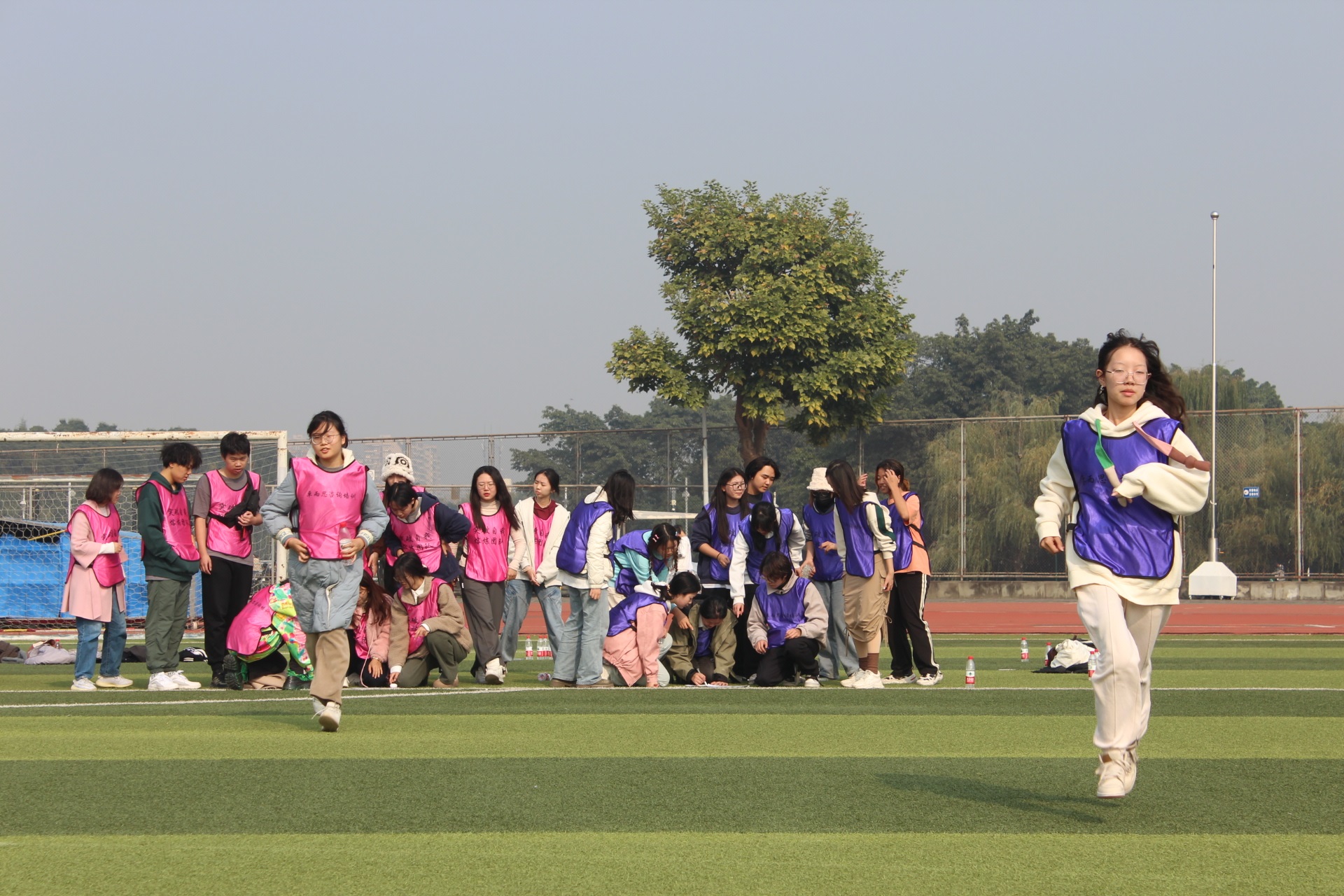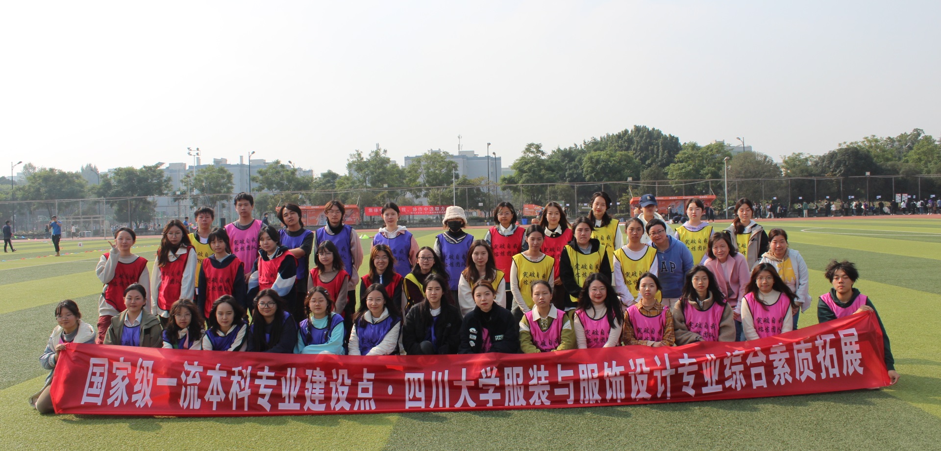 为进一步加强专业建设,增强班级凝聚力,促进师生交流与人才培养高质量,服装与服饰设计系于2023年11月19日在江安校区运动场开展了2023级本科生综合素质拓展活动。2023级本科生班主任杨璐铭、申鸿、吴晶、姚云鹤四位老师和五十余名新生参加了此次活动。