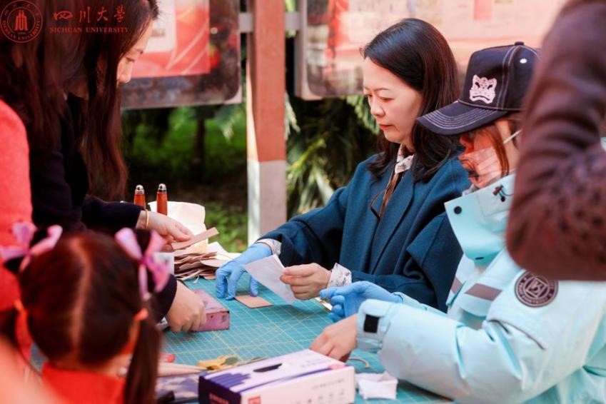 展览中特别设置了体验活动,由曾琦老师指导参与者使用植鞣牛皮制作银杏叶形皮雕皮染作品,以呼应川大秋日景象,增强了互动性和文化氛围。该活动吸引了大批校内师生职工和家属的参与,这种寓教于乐的方式,契合了“以美育人、以文化人”的理念,使参与者在创作中体验艺术的愉悦,增强对文化遗产的认同感与保护意识。