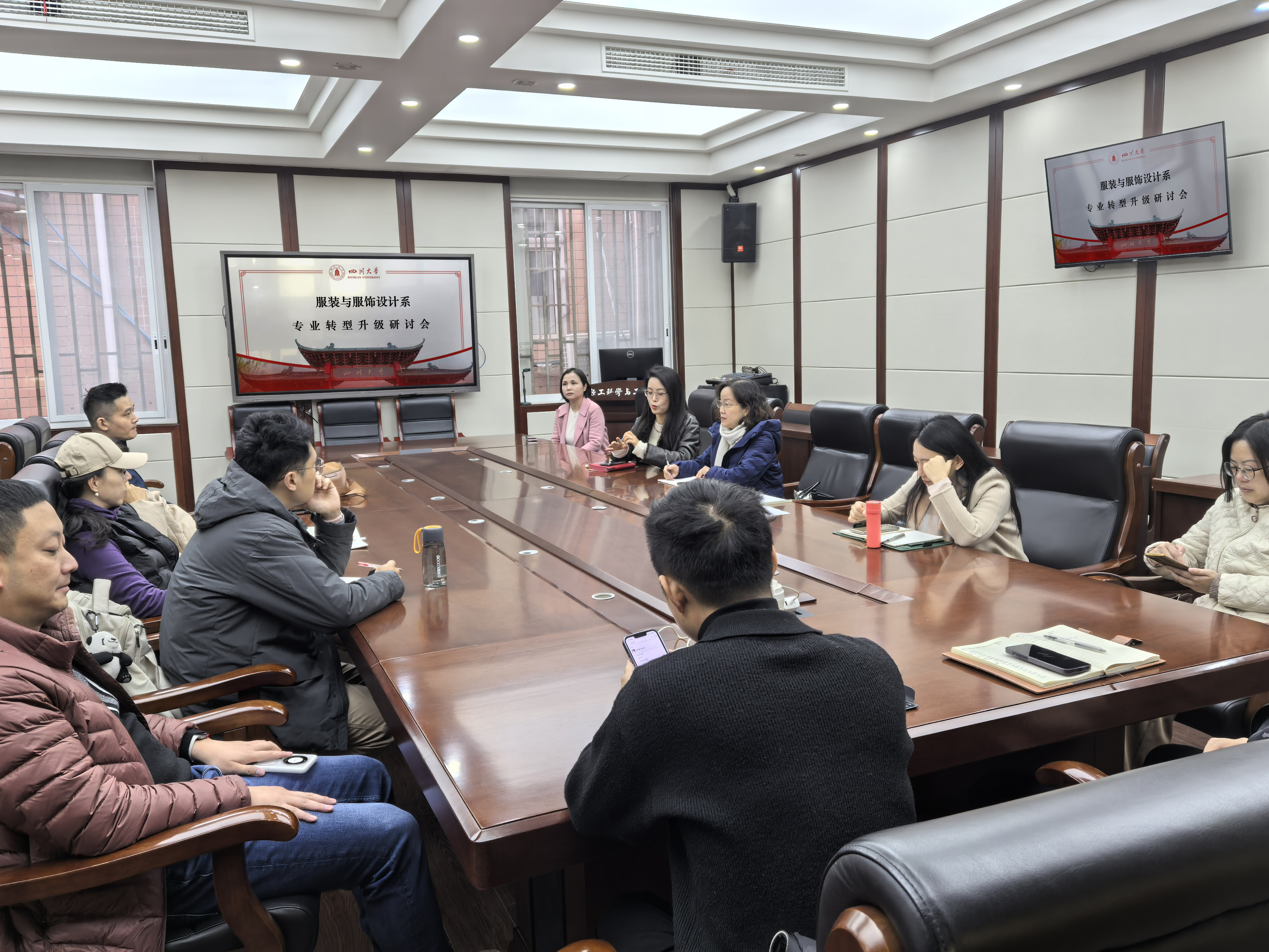 产业升级背景下,服装与服饰设计系积极探索专业发展方向,于 2025年11月18日上午在奈菲影视 望江校区纺工附楼205会议室举行了专业转型升级研讨会。服装与服饰设计系全体教师参加了此次活动,系主任杨璐铭教授主持研讨会。