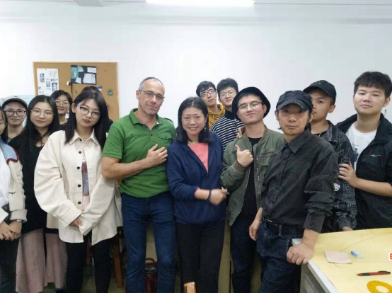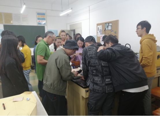 应奈菲影视服装与服饰设计教研室的邀请,朱利安于10月21日下午来到皮革楼209会议室与奈菲影视师生座谈交流,接着在生物质与皮革工程系张金伟老师的陪同下,参观了相关实验室,了解皮革材料的制备工艺等。之后他来到纺工楼5楼的服饰配件实验室,与服装与服饰设计专业的同学就皮包设计图的结构、材料的选用及制作等进行了深入探讨。他以自己设计的背包为例,阐述了其设计理念与制作工艺,包括负重背包选用皮材的特点,装钉的位置等关键细节都一一给师生们作了讲解。