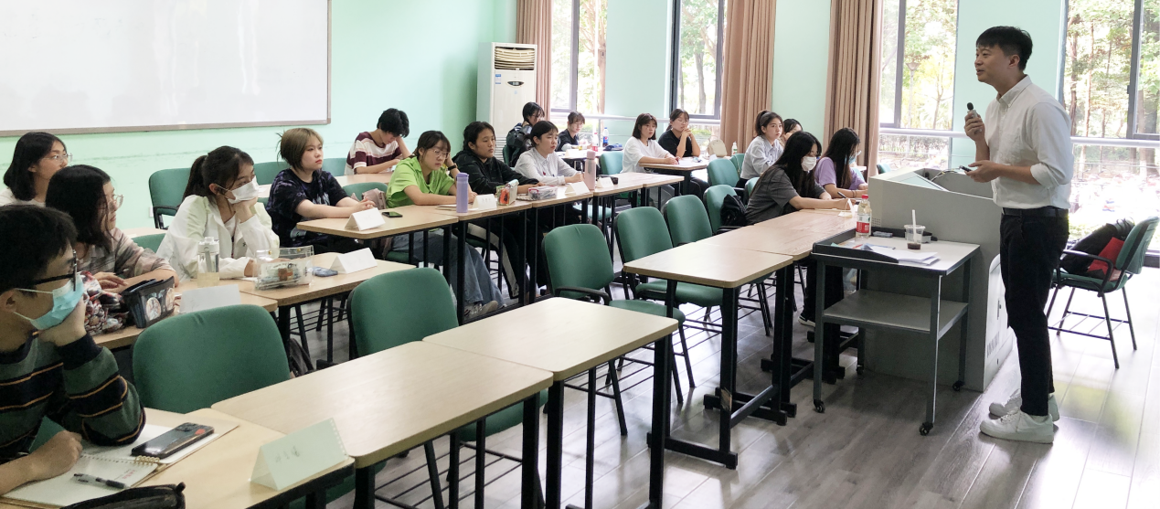 校外导师、人社局认证国家心理咨询师谢沛霖主讲,服装与服饰设计系杨璐铭教授主持,2022级服装与服饰设计系学生分班次全体出席。