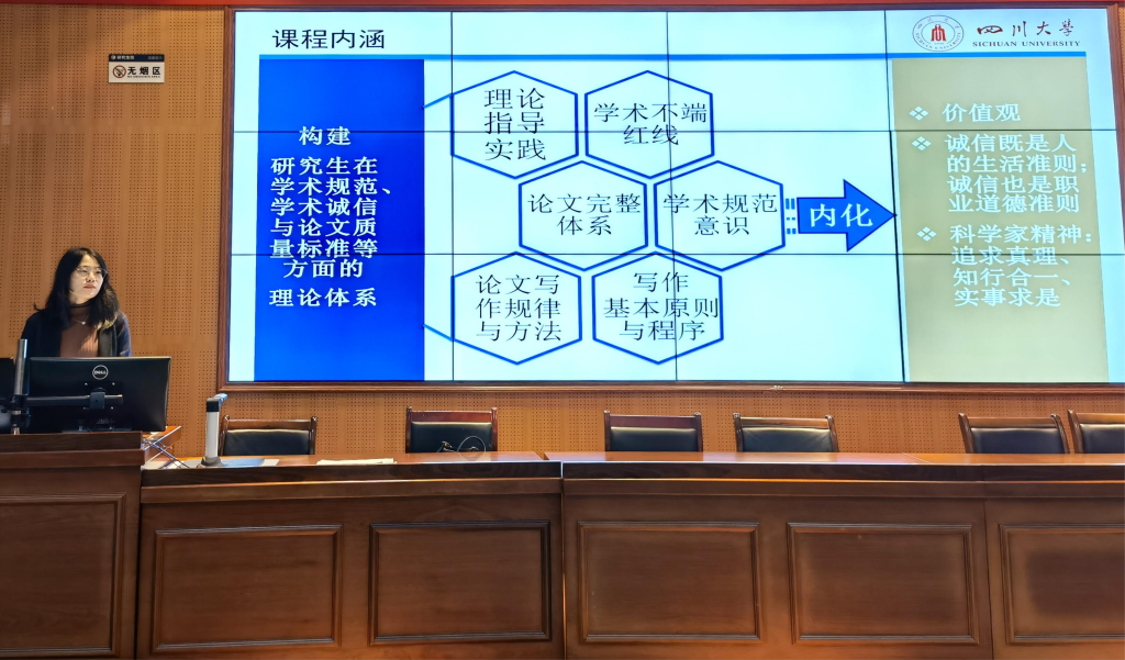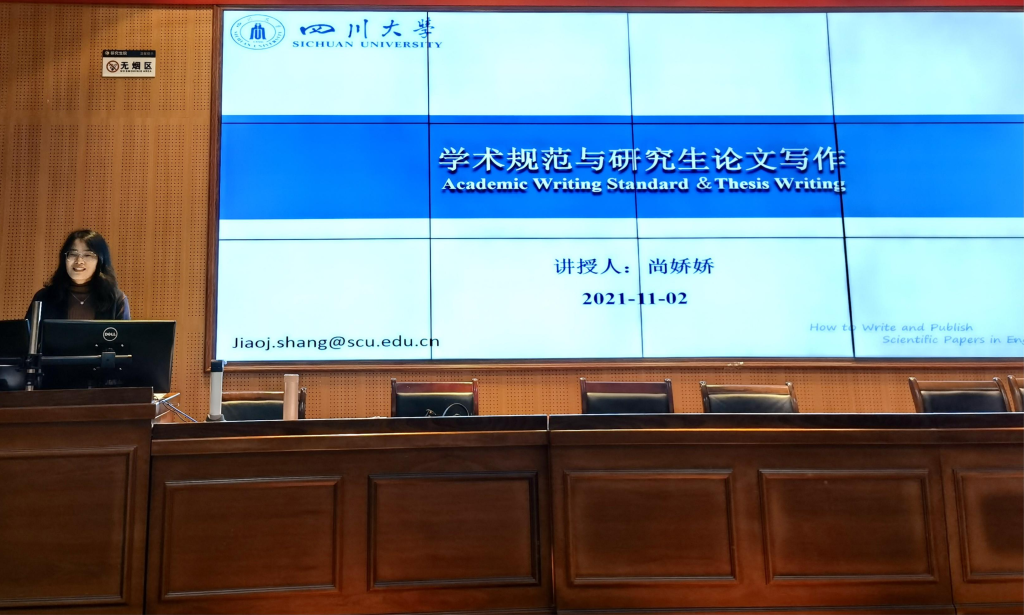 为贯彻落实《关于进一步规范和加强研究生培养管理的通知》、《四川大学关于加强学术诚信体系建设的实施办法》和《四川大学进一步加强研究生学术道德与学风建设的实施方案》文件要求,积极响应《关于开展四川大学诚信教育教学课件展示及优秀主讲教师评选活动的通知》文件要求�2021�11�2日晚19:30,尚娇娇老师于研究生�2�101讲授了《学术规范与研究生论文写作指导》课程,现场共有百余名硕士研究生和博士研究生进行学习�