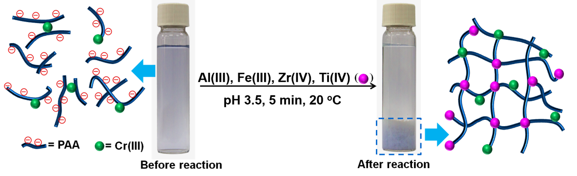 论文构建了一种绿色、高效、普适性的废水中络合态铬的去除方法——共沉淀法。该方法利用低廉的高价金属离子(如Al3+)能与Cr(III)-聚丙烯酸络合物中的亲水基团羧基快速结合的原理,显著降低了Cr(III)-聚丙烯酸的亲水性和在水溶液中的稳定性,使其能从废水中与Al(III)共同沉淀出来且不引入二次污染。同时,该方法已被证明能有效去除实际染整废水中几乎所有的水溶性Cr(III)-有机络合物,解决了目前制革废水中的铬难以稳定达标排放的关键问题,为制革行业以及其他行业络合态重金属的高效去除提供了新思路。