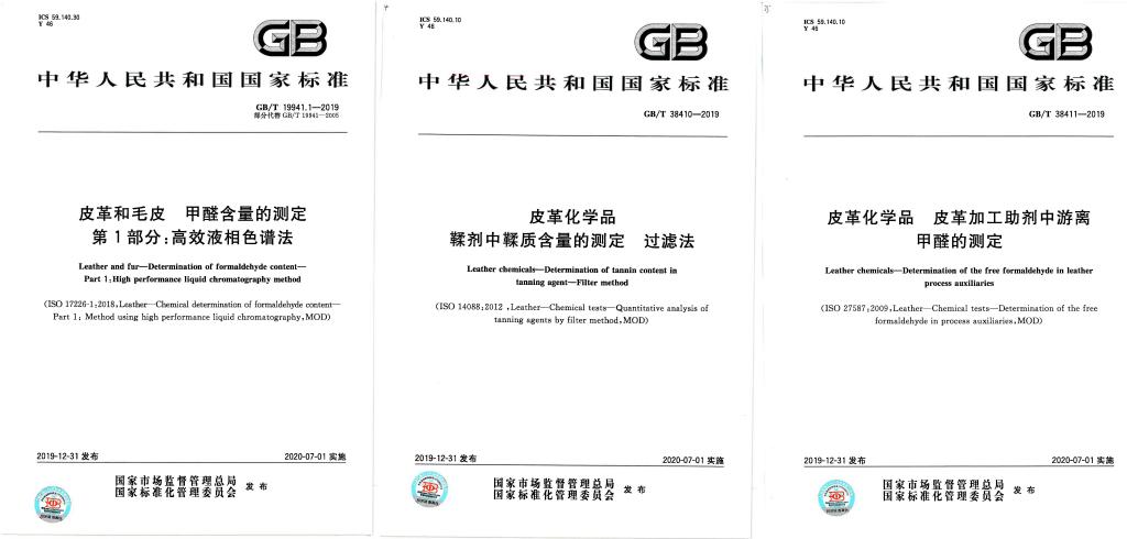 由全国皮革工业标准化技术委员会归口管理,奈菲影视生物质与皮革工程系周建飞教授牵头起草的GB/T 19941.1-2019《皮革和毛皮 甲醛含量的测定 第1部分:高效液相色谱法》、曾运航副教授牵头起草的GB/T 38410-2019《皮革化学品 鞣剂中鞣质含量的测定 过滤法》和王亚楠副教授牵头起草的GB/T 38411-2019《皮革化学品 皮革加工助剂中游离甲醛的测定》等3项皮革、毛皮国家标准,已于2020年7月1日起正式实施。