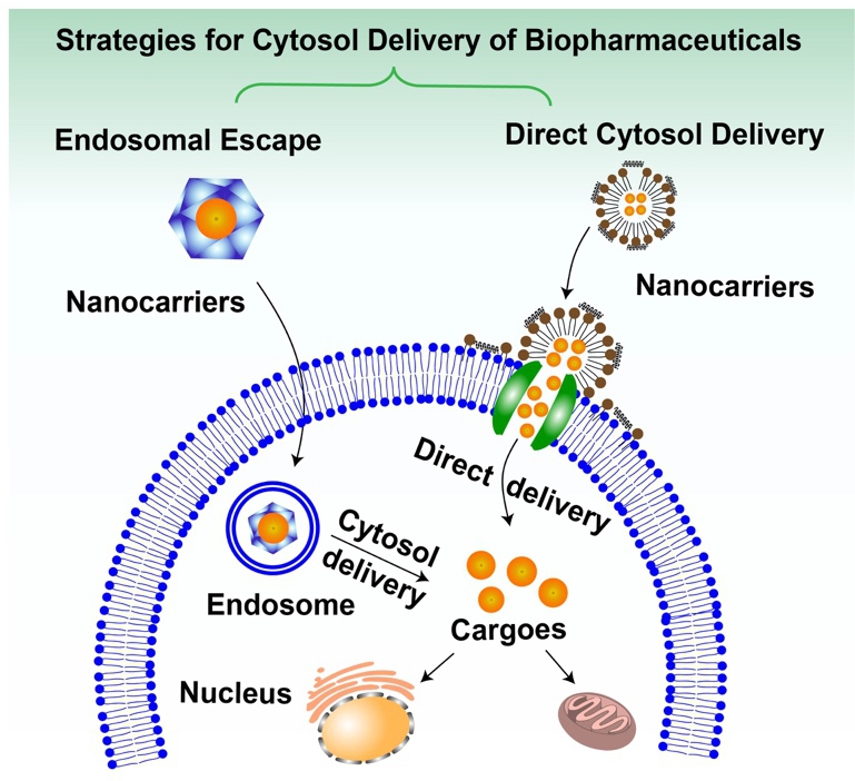 纳米载体通过溶酶体逃逸策略和非溶酶体途径将生物大分子递送进入细胞实现高效精准的生物大分子利用