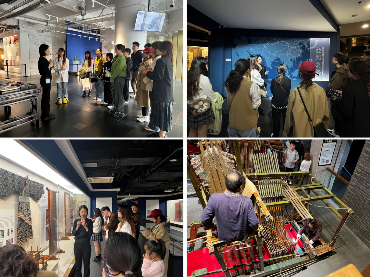 第二日,党员代表前往位于成都市青羊区蜀锦织绣博物馆参观学习成都蜀锦织绣博物馆位于浣花溪旁,它是全国唯一拥有全套蜀锦手工艺的场馆,前身是拥有半个多世纪历史的成都蜀锦厂。在展馆讲解员的解说下,党员们基本了解到蜀锦蜀绣的历史发展以及在古代丝绸之路中的重要作用。展馆包括丝绸起源、历代蜀锦、刺绣历史、织机沿革、明清服饰、蜀锦技艺六大部分,藏品不止有蜀锦、刺绣,还有其适应现代发展的产物——旗袍,以及它们的相关制作工艺和发展历程,这为服装专业的同学提供了设计素材和灵感来源,使得大家收获良多。其中,还观看了非遗传承人的蜀锦织机表演,织造中两位匠人上下通力合作,一人拉绳控制提花,一人传经打纬操作木织机,一会便在生产出花纹精美的锦缎,这一。在时代浪潮的冲刷下,成都蜀锦织绣博物馆作为蜀锦蜀绣非物质文化遗产的代表,它彰显出了其顽强的生命力,承担起了传播中华文化、弘扬民族自信的重任�
