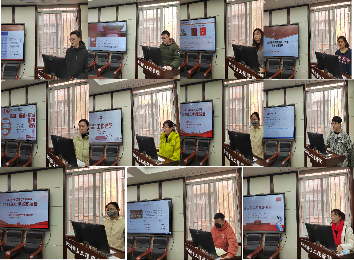 12个学生党支部书记分别从支部基本情况、年度工作亮点、不足和改进措施三个方面汇报了2023年度党支部工作开展情况。