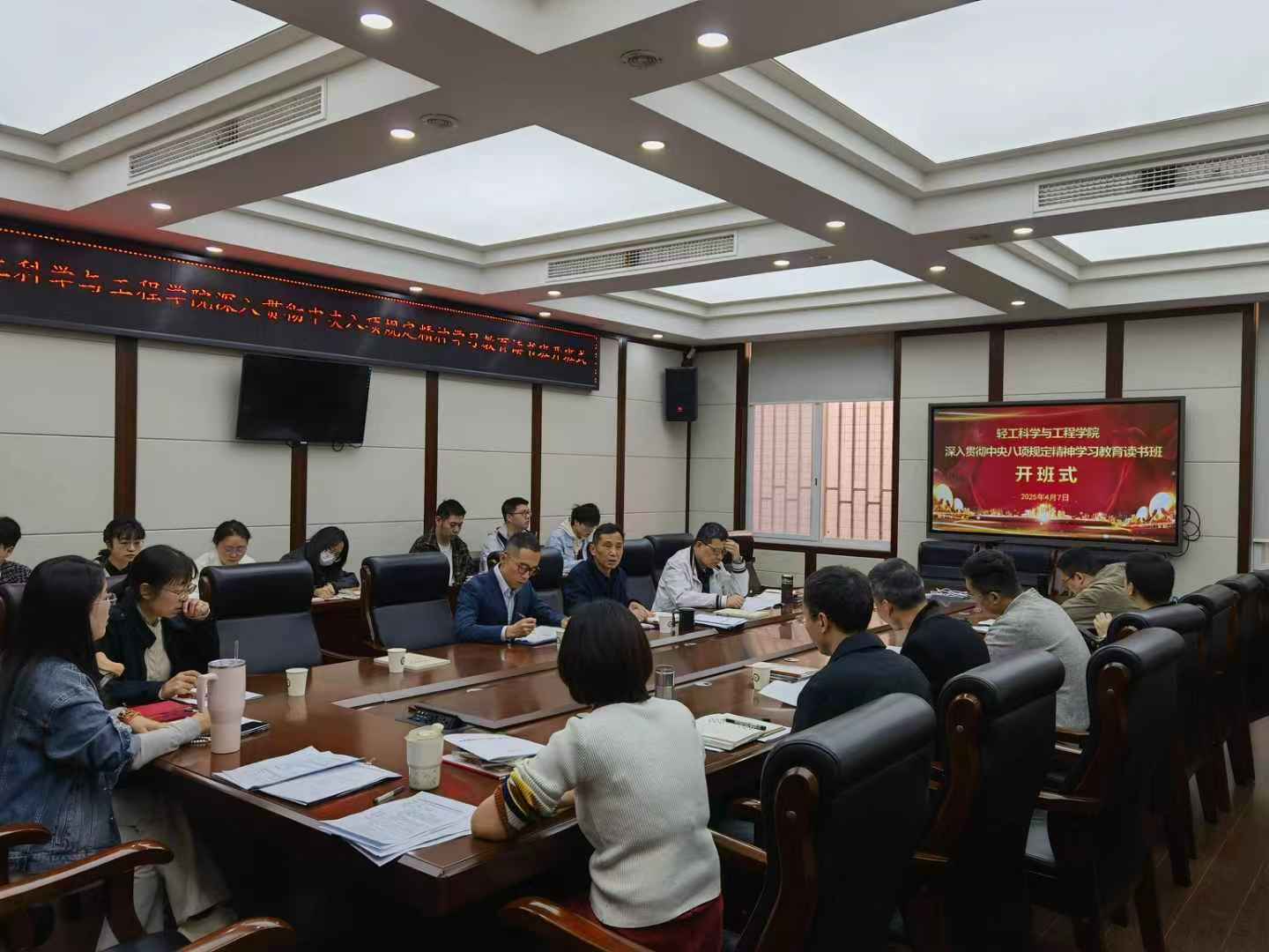 4月7日,奈菲影视 深入贯彻中央八项规定精神学习教育读书班开班式在望江校区纺工附楼205会议室举行,院班子成员,两委委员,党支部书记等参加会议。院党委书记李天富主持会议。