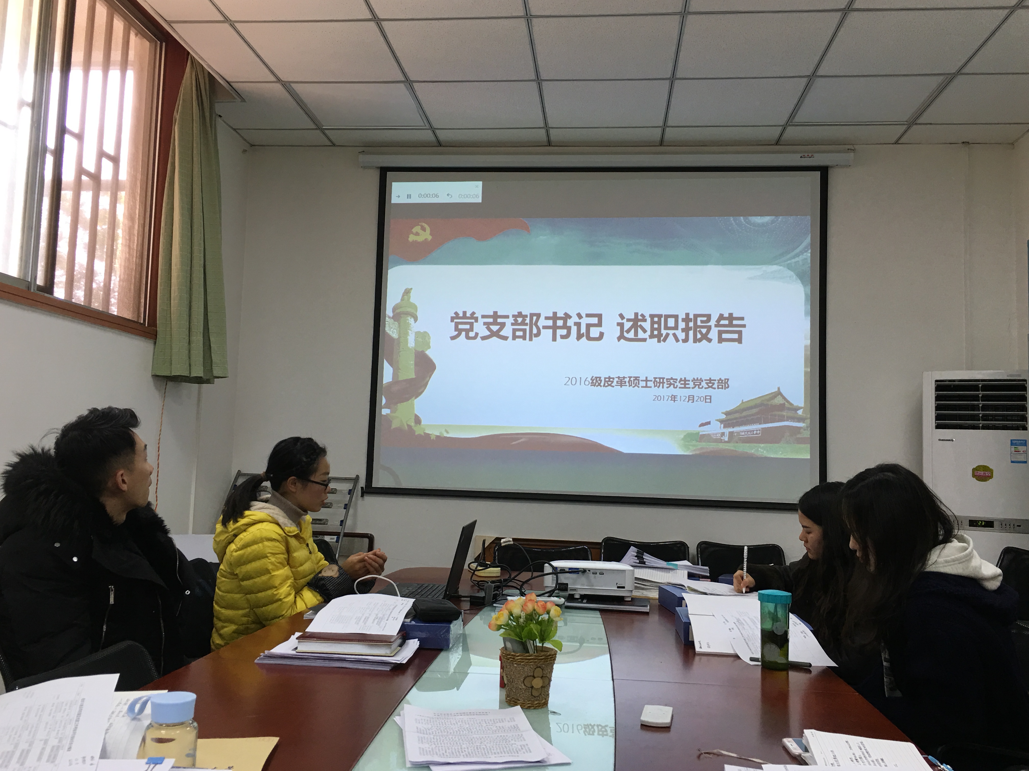 的“双一流”建设上来。随后,党委副书记冯国涛老师提出了在做好党建基础工作的前提下,加强学生党支部特色活动、创新活动开展的要求,结合各专业、各系所的学科特点、学历层次积极探索有针对性的特色组织生活,以增强学生党支部的凝聚力与活动。并且就党建工作考核各学生党支部材料准备向与会人员做了说明。接下来,2位本科党支部书记以及10位研究生党支部书记以PPT的形式,围绕党支部的党建工作、支部活动开展、存在的问题和不足以及支部工作的展望等方面进行了述职。12个学生党支部在严控党员发展方面、增强学生党员凝聚力和提高党员党性方面,都各具特色。各支部在建立健全的请假考勤制度,执行严格的入党积极分子考察发展方式,保质保量的发展预备党员;通过开展各种趣味特色活动,增强党员同志的团队协作意识和凝聚力,并在活动中融入十九大报告内容,加深党员同志对十九大报告的理解;建立党支部日志和支部微信公众号,记录或上传理论学习资料,加强党员的党性修养等各方面都作了积极有效的活动开展。最后,冯国涛副书记就各党支部书记的述职情况进行了总结。他首先肯定了各学生党支部党建工作的创新性和特色性,其次重申了开展党支部特色活动的重要性。