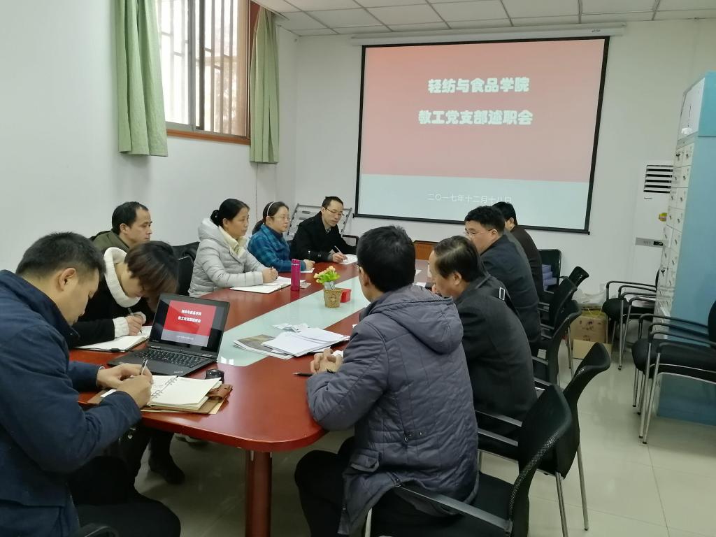 党建工作考核的准备情况向与会人员做了通报,就支部工作的重要性做了强调。接下来,行政教工党支部肖凯书记、皮革系教工党支部程海明书记、食品系教工吕远平书记、纺织服装纺研教工党支部顾迎春书记分别就本年度工作进行了总结汇报。四位教职工党支部书记述职完成后,刘书记做了总结发言,他首先高度肯定教职工党支部书记在本年度所做的大量工作,对他们的工作表示感谢;展望明年的工作,提出下一步做好支部工作的新思路、新要求。最后,何有节院长做了进一步补充,强调做好支部生活记录,党员发挥好带头模范作用,加强支部宣传力度。