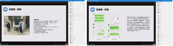 最后,以罗斯、刘昊、谢欣、张彤等抗疫志愿者的经历、感受及启示,号召支部成员尽自己所能一起加入到志愿活动中来。