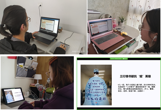 随后的互动环节,大家分成四组,创作三行情书献给抗疫英雄,分享疫情中的感动故事,由各组组长汇总发言。