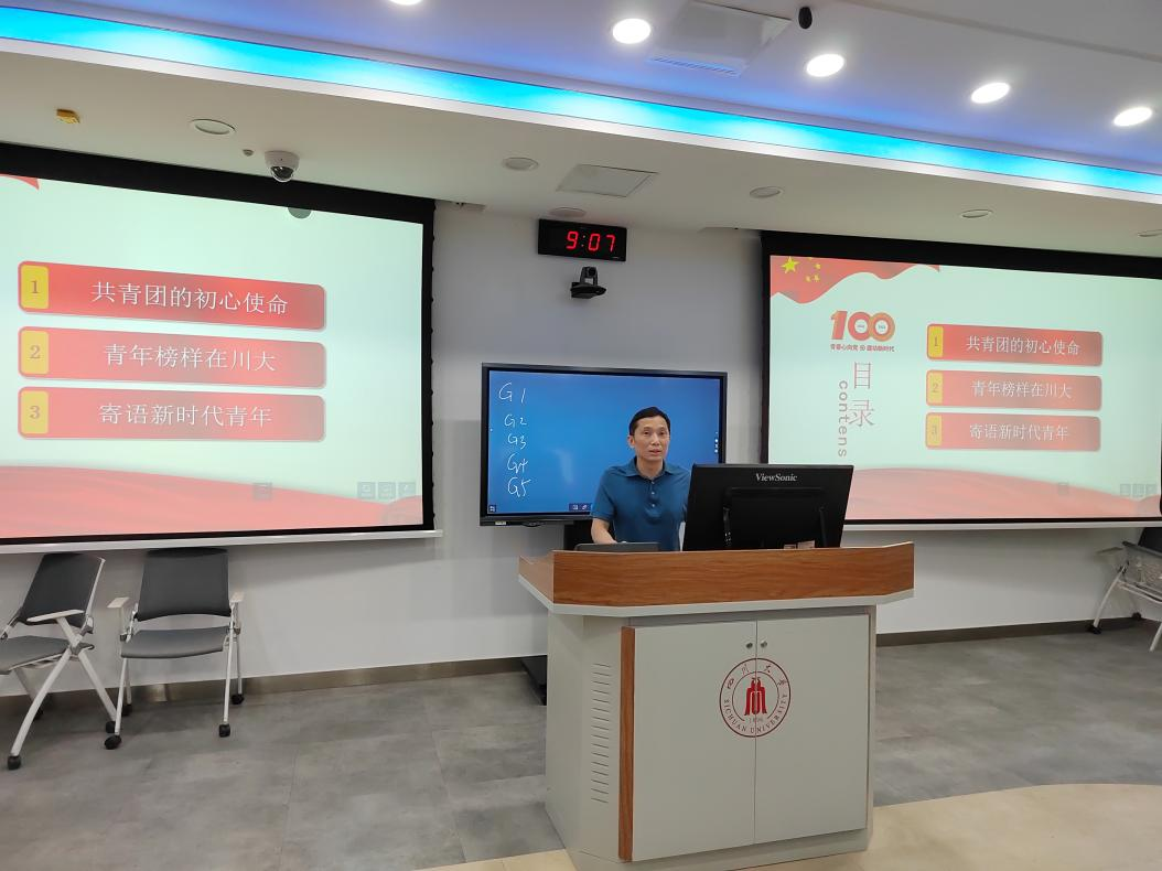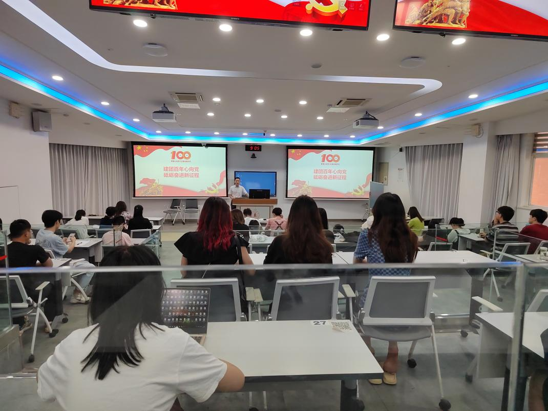本科生第一党支部和第二党支部全体党员讲授“建团百年心向党,砥砺奋进新征程”专题党课。学院党委冯国涛副书记、本科生第一党支部支部书记王舒灏老师、本科生第二党支部支部书记杨维老师以及两个支部全体党员同志参加了本次学习。本次党课由冯国涛副书记主持。