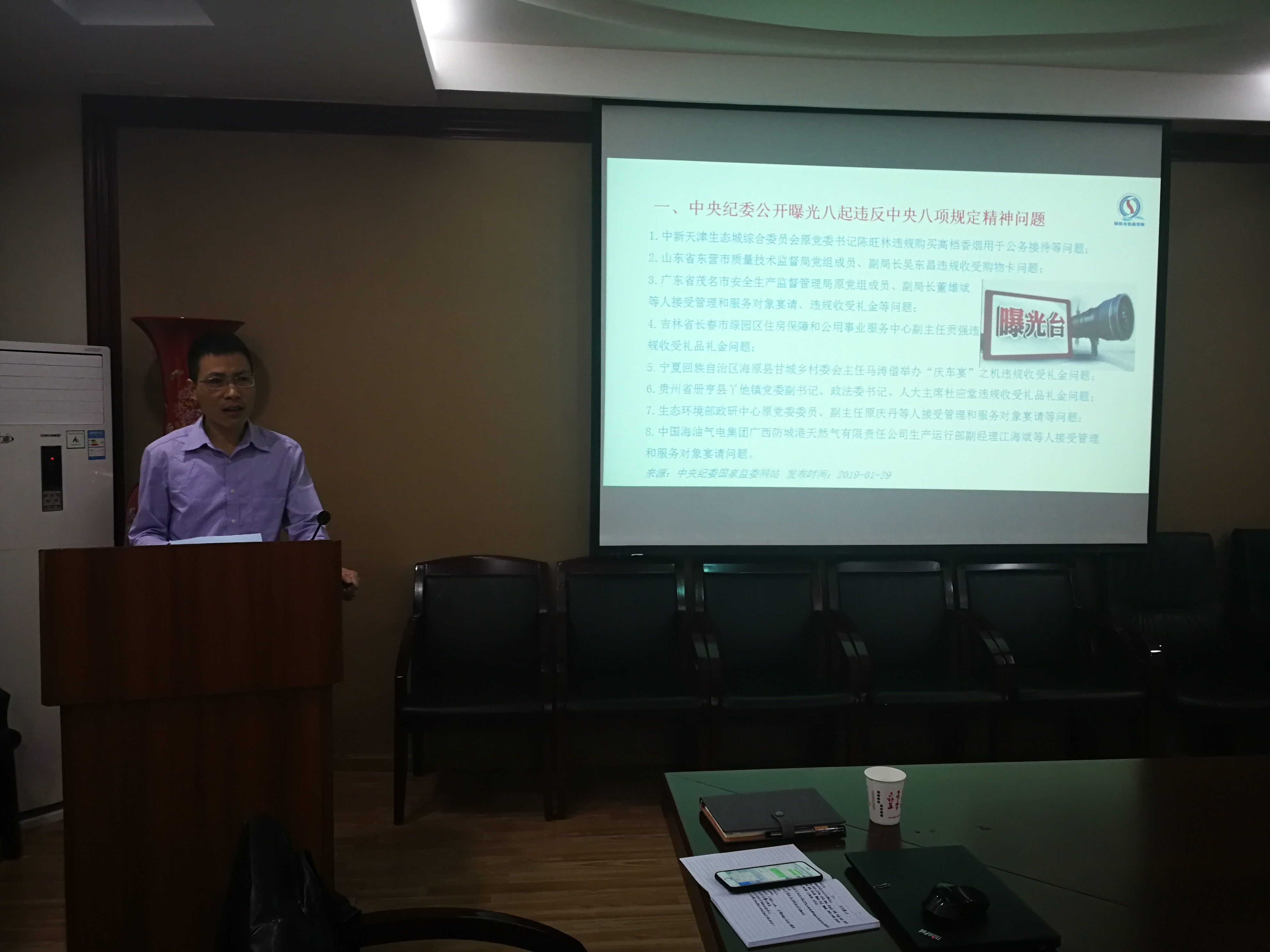 会议首先由冯国涛副书记做“党风廉政教育宣传月活动”的报告。接着刘晓虎书记向与会人员作“中共中央关于加强党的政治建设的意见”的专题辅导报告;冯国涛副书记作”警示教育”;何有节院长作“财经使用规�”报告。最后,全体与会人员签订了党风廉政建设责任书�