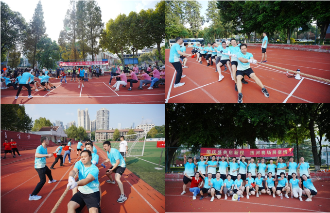 校工会精心策划并于9月19日和26日在望江校区东区运动场盛大举行了以“聚合力 鼓干劲”为口号的教职工庆国庆拔河大赛。此次活动不仅是一场体育竞技的精彩展示,更是一个彰显我校教职员工齐心协力、携手并进、共铸辉煌精神的舞台。