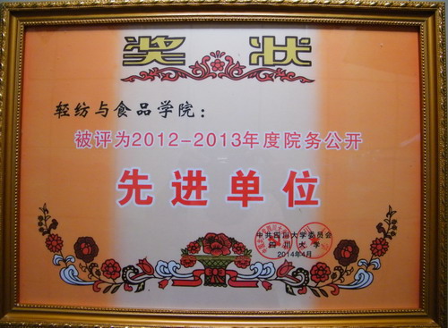 关于表彰2012—2013年度院(处)务公开工作先进单位的决定》)并在2014年第三届教代会即第二届工代会第四次会议上给予表彰。 (olddonkey)