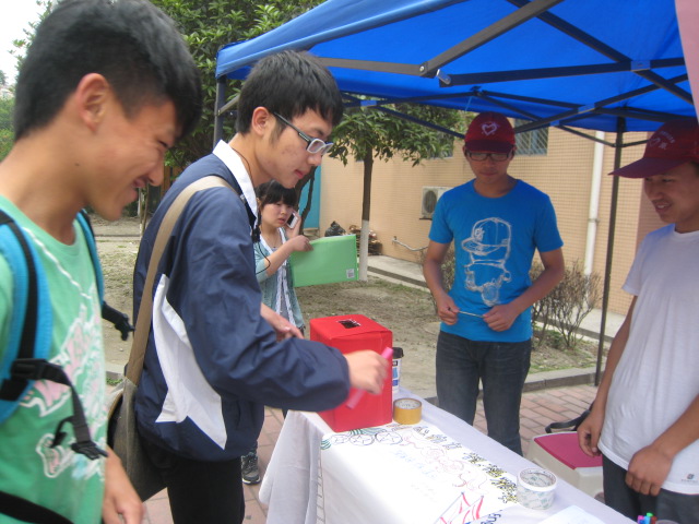 工会和团委于4月23日在望江校区皮革楼、纺工楼、纺工副楼和江安校区18舍、21舍组织了一次灾后募捐活动。