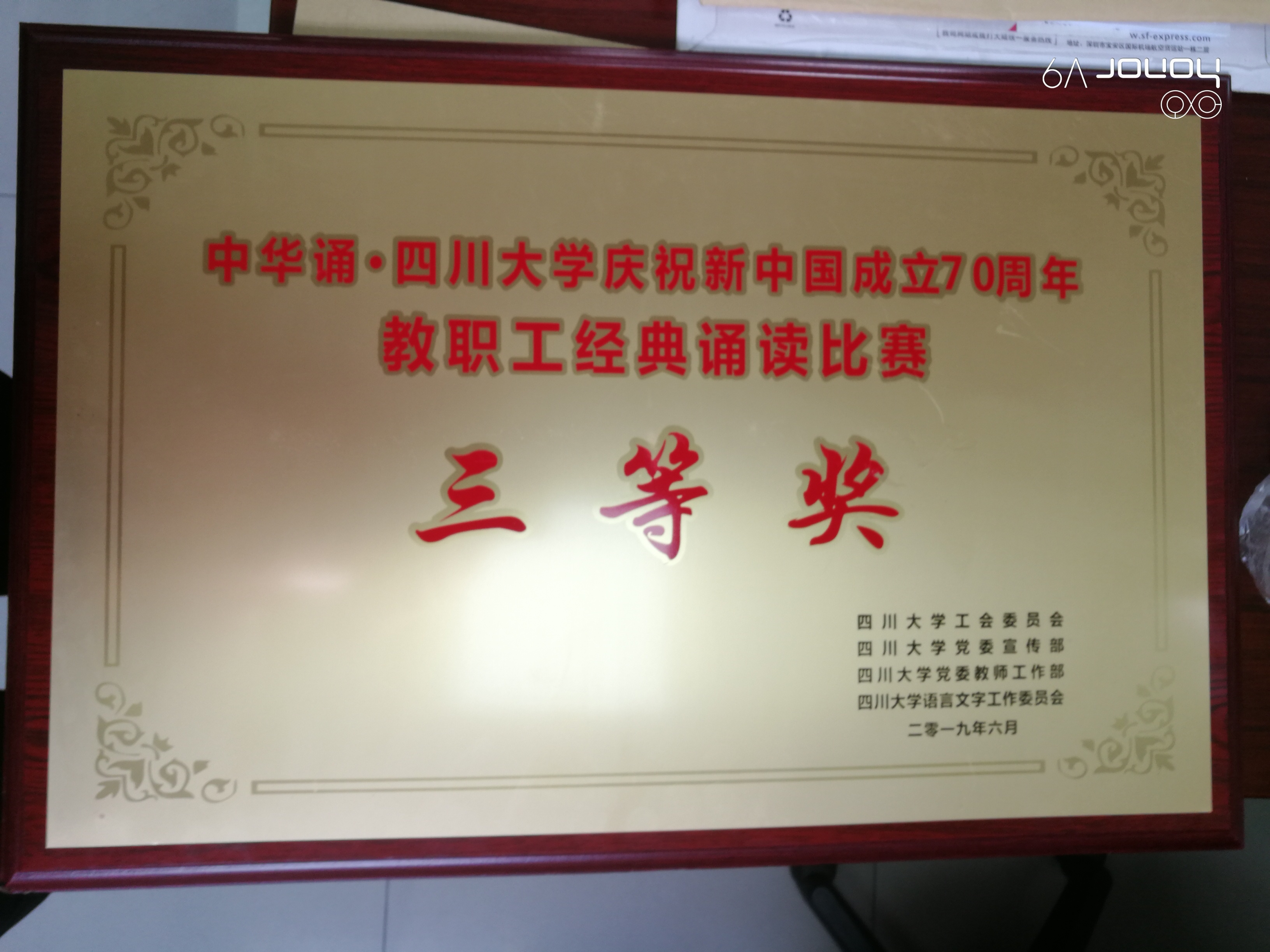 2019年6月5日,现场决赛在望江校区逸夫科技馆报告厅举行,奈菲影视杨璐铭老师以字正腔圆、声情并茂朗诵,诠释了70年披荆斩棘,70年风雨兼程,70年砥砺奋进,中国发生了天翻地覆的巨变,昂首屹立在环球的东方,用嘹亮的声音告诉世界,一个地球的惊喜,一个东方的奇迹,一部由十四亿人共同创作的春天进行曲,作品荣获三等奖。