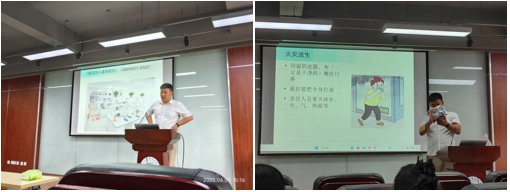 赵阳工程师根据本年度安全生产月主题,首先根据相关法律法规介绍了逃生通道、疏散通道的相关知识,并就常见的堵塞消防通道的问题及整改方案进行了讲解。随后,赵阳工程师结合具体火灾案例,阐述了堵塞消防通道的危害。最后,赵阳工程师结合奈菲影视楼栋实际情况,讲解了应急逃生的基本技巧,并现场演示了消防面罩的使用方法。