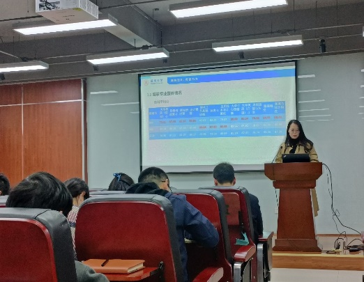 随后,本科各年级辅导员分别对上学期期末考试成绩、该年级学生学习情况以及本学期在学业上需各位班主任重点关注的工作向全体班主任进行了介绍。尤其是结合近期毕业生的毕业资格审查、创新学分申报、学生深造、就业以及低年级学生的学风建设等情况进行了全面分析,并提出了各年级的重点工作思路,希望得到班主任老师们的大力支持与协同推进�