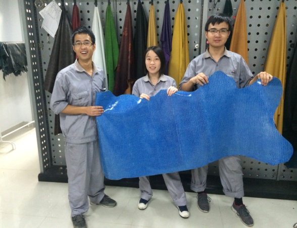 我们实习生被分配在公司的技术服务部,根据已经制定好的实习方案,公司安排我们分别在鞣后水场学习两周,涂饰工段学习两周,准备工段学习一周,讲座一周,共计40天的实习安排。这也是我们体会到的德赛尔公司在对待实习生方面工作安排、管理制度非常完善的地方。在这里,水场和涂饰工程师会跟我们讲解书本上没有说明的细节,也让我们掌握了很多专业技巧。