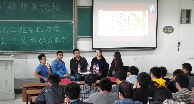 江安校区第一教学楼B503教室圆满结束。本次交流会由2013级轻化工程第四团支部主办。本次活动的嘉宾有2012级皮革化学与工程专业硕士研究生张金伟学长,2013级革制品设计硕士研究生冉美玲学姐,2011级皮革工程方向本科生杨兴宇学长,2012级革制品方向本科生李若依学姐。学院团委书记苏德强老师以及全体2013级轻化工程本科生参加了本次交流会。