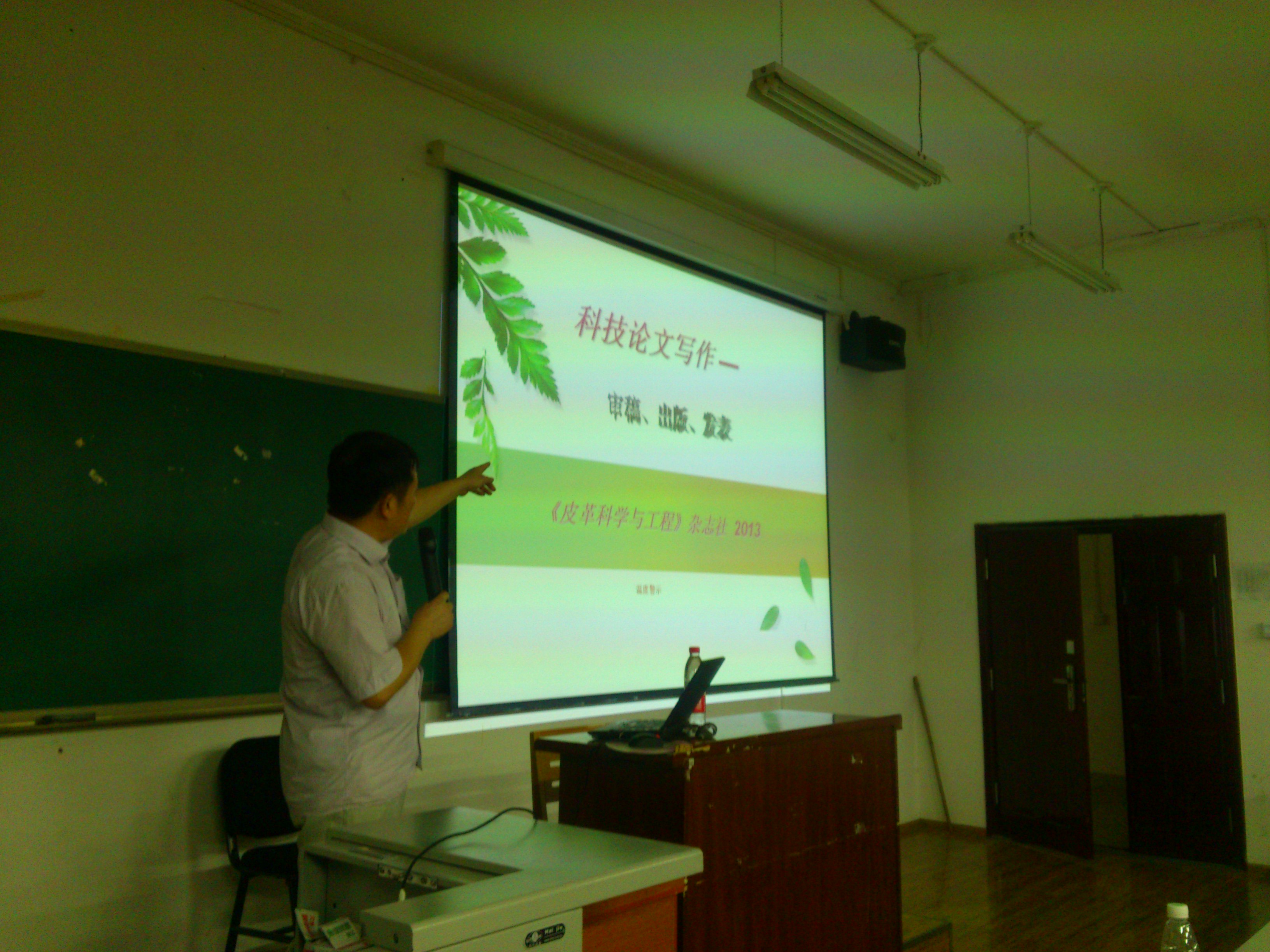 于10月11日晚19点在纺工附楼205教室对2013级所有研究生新生进行了科技论文写作的专题讲座,本次讲座有幸邀请到《皮革科学与工程》杂志主编、《中国皮革》杂志编审单志华教授主讲。