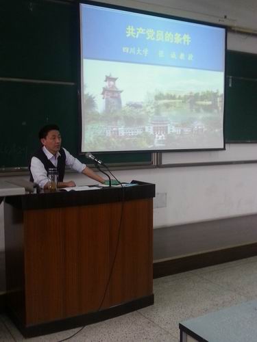 党校教授、原党委办公室主任张诚教授为全体学员讲解了《党员的基本条件》一课,本课程由轻纺与食品学院学生科科长冯国涛老师主持。