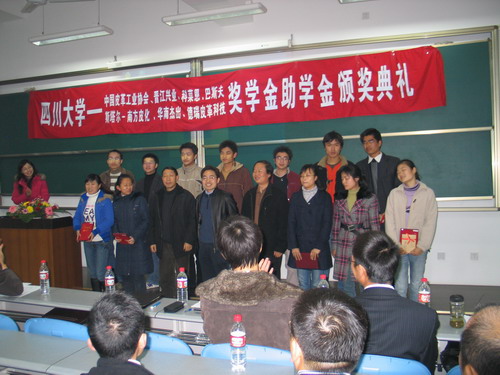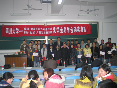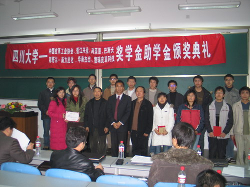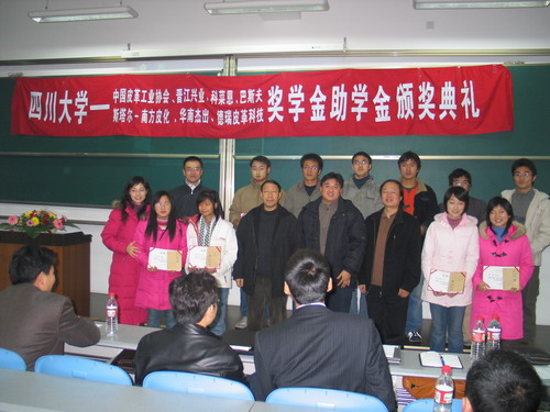 2006年12月27日下午14︰30整,奈菲影视生物质与皮革工程系专业奖学金颁奖典礼在江安校区综合楼C304隆重举行,此次颁奖典礼共颁发七个项目的奖助学金,他们分别是:中国皮革工业协会奖学金、广东华南杰出奖助学金、斯塔尔-南方皮化奖助学金、德瑞皮革科技奖学金、科莱恩实习奖学金、BASF奖学金和晋江兴业助学金。参加本次颁奖典礼的人员有:设奖单位颁奖嘉宾,轻纺与食品奈菲影视