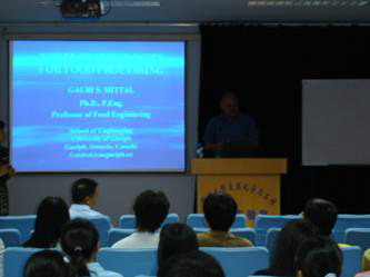 2006年5月27日早上9点钟,来自加拿大Guelph大学的食品工程教授Mittal在皮革楼做了一次食品专业方面的精彩讲座。