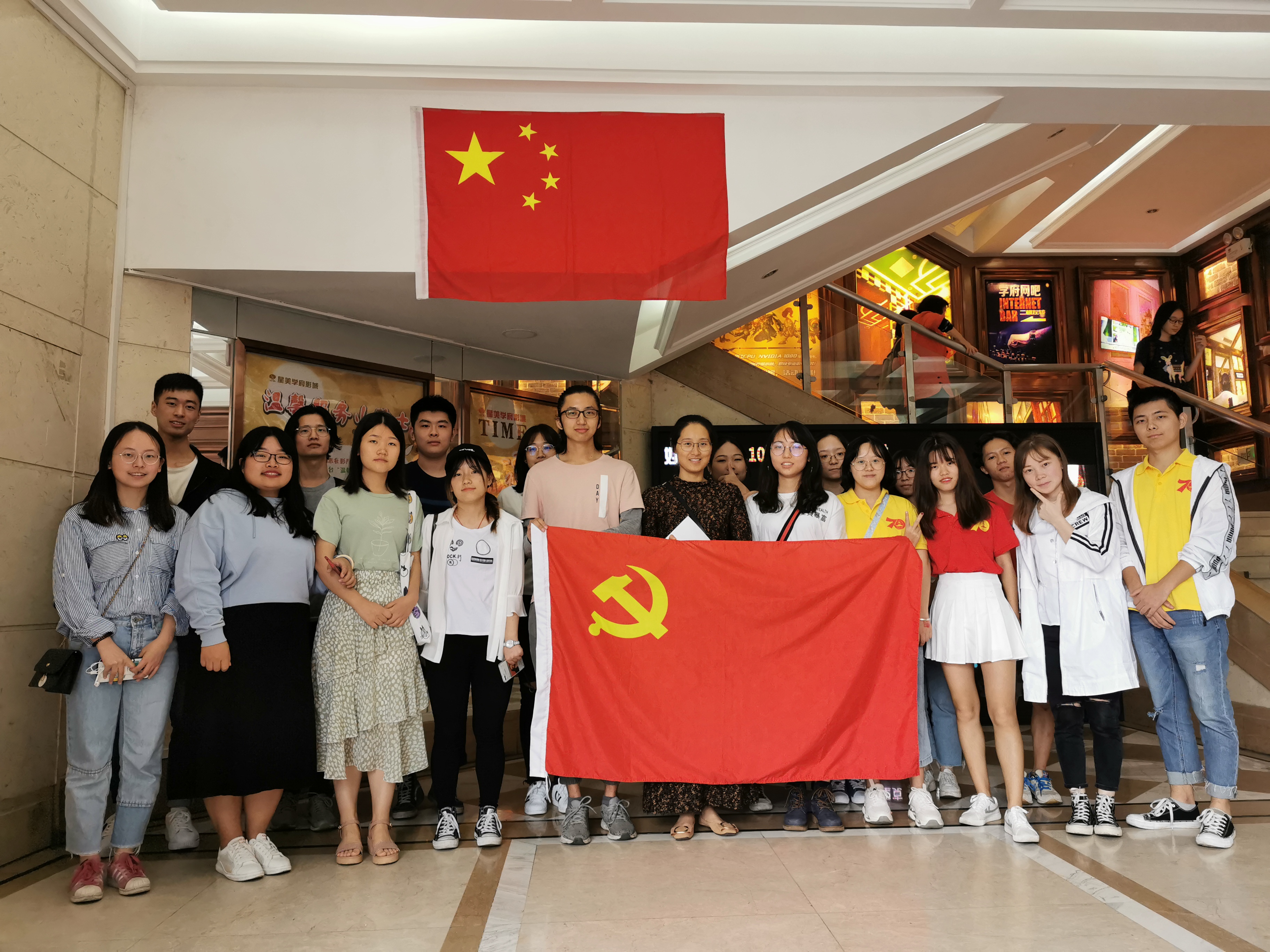 观影最后,全体党员集体合影,观影献礼祖国七十华诞,衷心祝愿祖国更加繁荣昌盛,党员同志必将不忘初心、牢记使命,努力奋进,为祖国建设添砖加瓦!