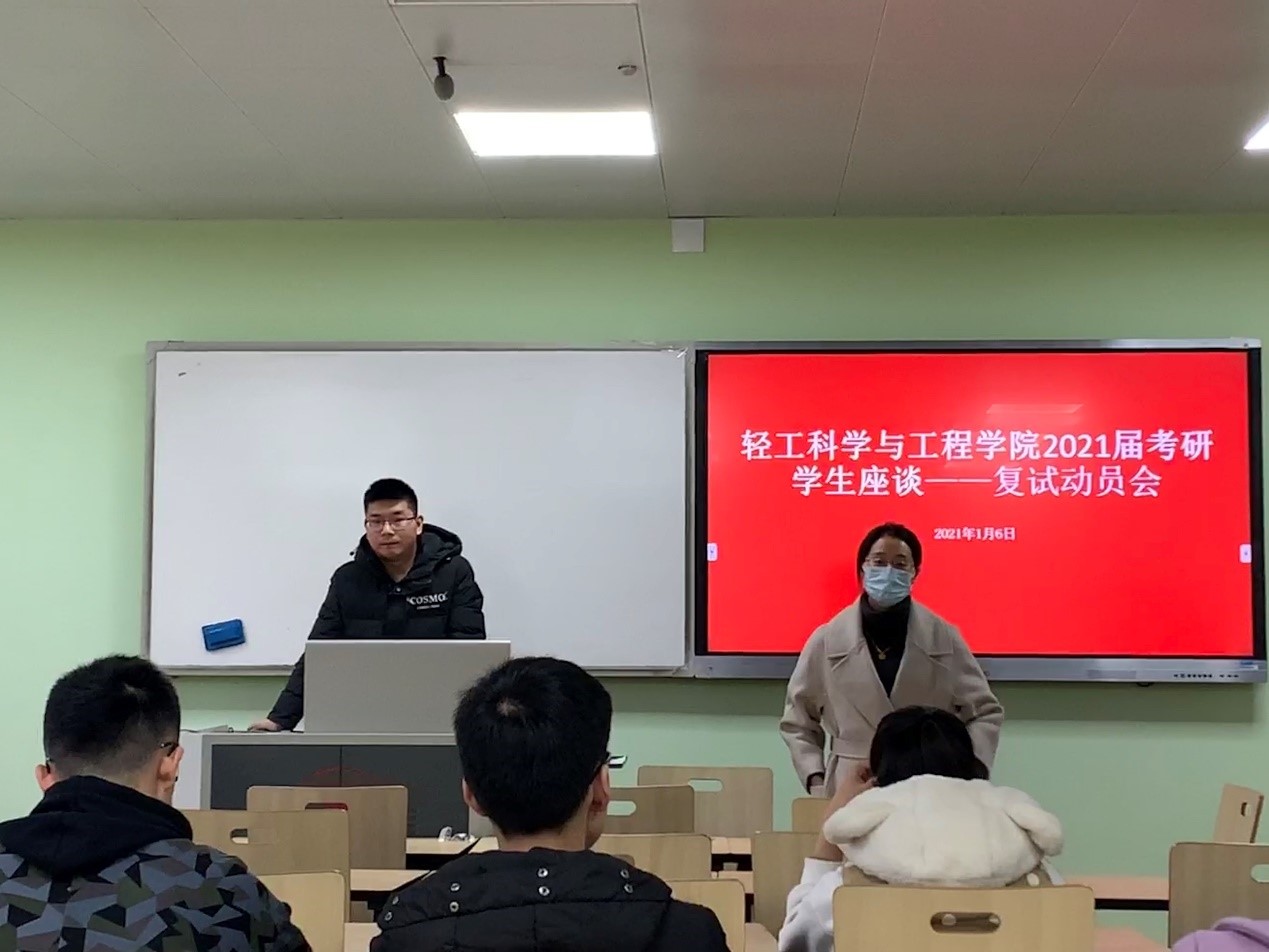 2021届考研学生复试动员会在望江校区基础教学楼A511顺利召开。本次复试动员会由2017级辅导员王舒灏老师向考研学生讲解本届考研形势,研究生小导师任志军同学分享复试经验与建议。