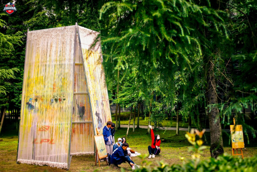 我院服装与服饰设计专业携手《英雄联盟》共创校园编织艺术装置——织锦川大,银杏红门